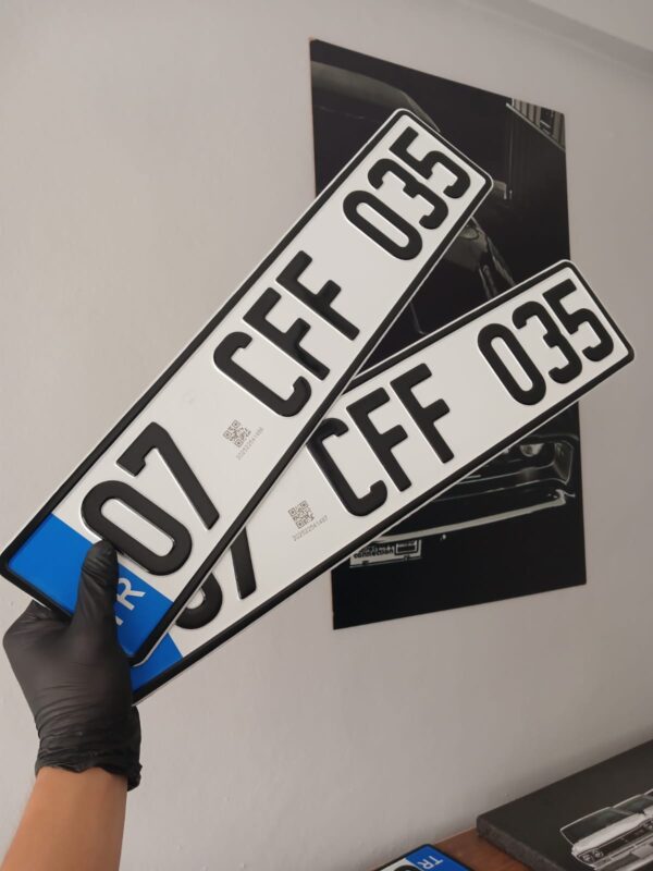 Stardart Araç Plakalarımız 52*11 Ölçülerindedir. Mevzuata uygun şekilde mühürlü ve hologramlıdır. Tüvtürk Araç Muaynesinden sorunsuz şekilde geçmektedir. 2024 Sonrası Araç Tescillerinde QR kod Zorunlulugu Vardır.